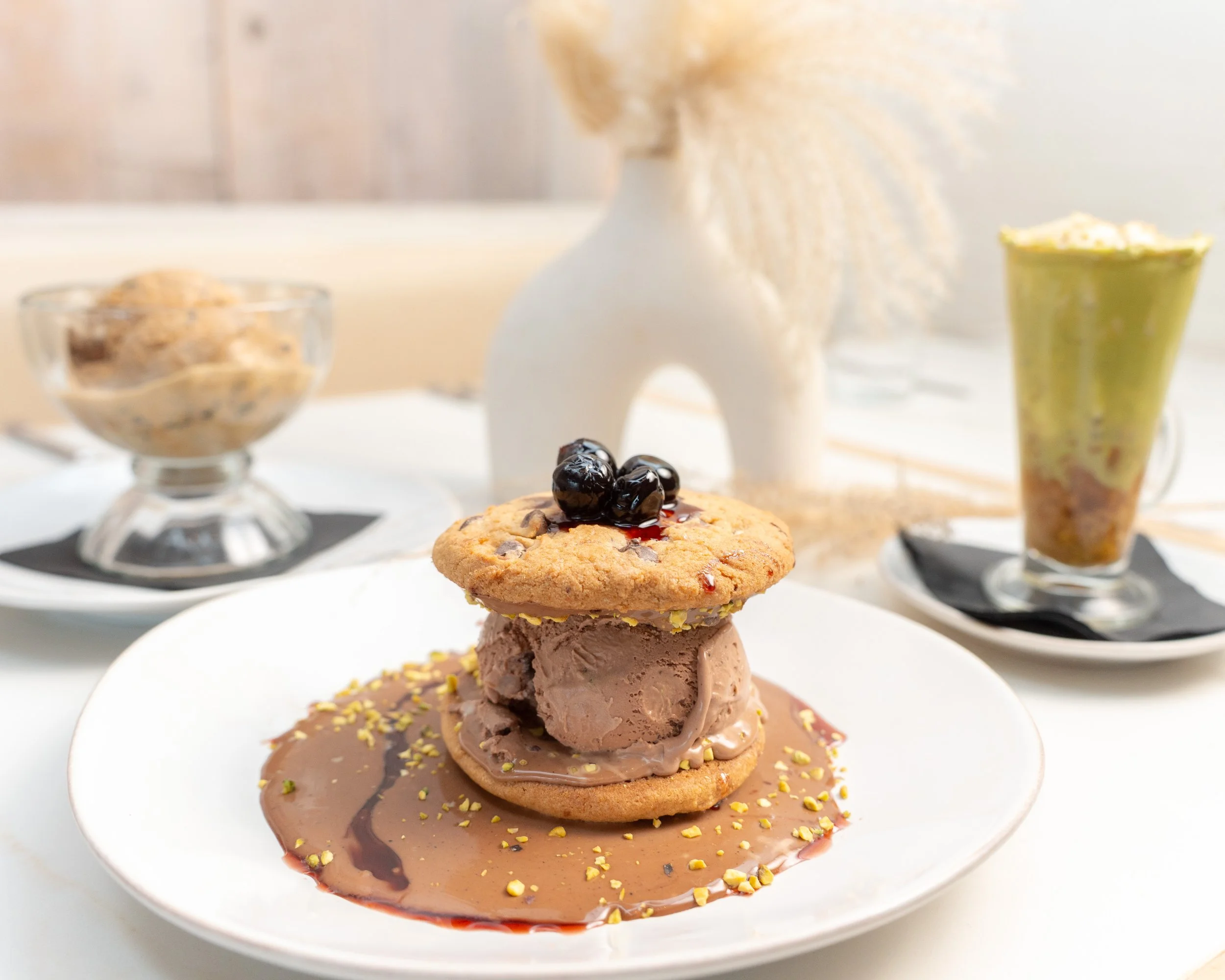 Dessert DESSERT BANANA PUDDING BRÛLÉE BANANA. PANNA COTTA CREAMY HONEY AND LAVENDER, FRESH ORANGE, GRANOLA CRUMBLE. STRAWBERRY SHORTCAKE FRESH BAKED SHORT BREAD, CALIFORNIA STRAWBERRIES, STRAWBERRY CREAM, POPPY SEED DRIZZLE. GELATO COOKIE SANDWICH CHOCOLATE CHIP, PISTACHIO, CHOCOLATE GANACHE, BRANDY CHERRIES. CHOICE OF VANILLA, CHOCOLATE, OR PISTACHIO. GELATO/SORBETTO VANILLA, CHOCOLATE,LEMON, SEASONAL SELECTIONS. 5-LAYER CHOCOLATE CAKE MACERATED RASPBERRIES & COMBIER ROSE LIQUEUR. AFFOGATO FRESH BREWED ESPRESSO, CHOICE OF GELATO, ACCOMPANIMENTS. DESSERT COCKTAILS ESPRESSO MARTINI VANILLA VODKA, KAHLUA, CHILLED ESPRESSO. ADD VANILLA GELATO +3 AZTEC OLD FASHIONED ANEJO, CHOCOLATE AND ORANGE BITTERS, AGAVE, CHOCOLATE SHAVINGS. BISCOTTI OLD FASHIONED RYE, FARETTI BISCOTTI, CHOCOLATE BITTERS.